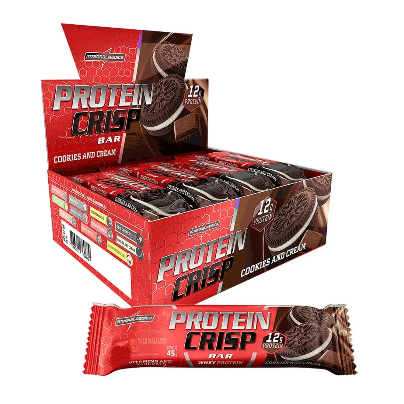 Barra de Proteína - Protein Crisp Bar - INTEGRALMEDICA A Protein Crisp é formada por até 13g (dependendo do sabor) de proteínas de alto valor biológico. Essas proteínas são fundamentais para a construção de muscular, além de serem importantes para a manutenção da massa muscular em programas de perda de peso. Por isso a Protein Crisp pode ser consumida tanto em dietas para perda de peso, quanto em dietas para ganho de massa muscular. Por ser uma barra de proteína completa, com proteínas, gorduras essenciais e aminoácidos, sua ingestão aumenta a saciedade entre as refeições, diminuindo a vontade de comer doces e alimentos calóricos.