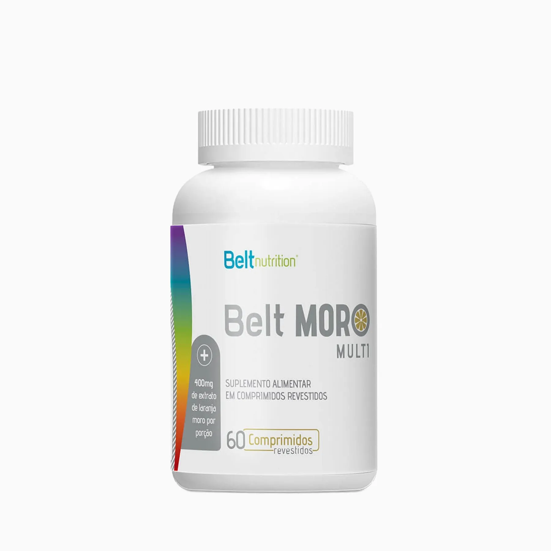 Belt Moro é um suplemento que contém o autêntico Moro, associado ao café verde, l-carnitina, espirulina e clorela. Todas essas associações auxiliam no metabolismo de carboidrato, gorduras e proteínas. Moro é um extrato seco obtido a partir do suco de laranjas vermelhas Moro (Citrus sinensis L Osbeck). Os compostos bioativos da laranja Moro são considerados antioxidantes e estudos científicos comprovam que a redução do estresse oxidativo do organismo, se reflete na diminuição de gordura, o que contribui para auxiliar na perda de peso. Belt Moro está diretamente ligado à redução de medidas, gerenciamento de peso e maior energia e disposição nos treinos, pois também contém cafeína e L-carnitina, aumentando a performance e consequentemente tendo uma melhora na composição corporal através da redução de gordura corporal.